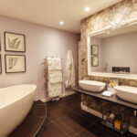 Chic yet understated and more than just sumptuous, the bedroom with separate lounge enjoys a bathroom like no other in the hotel – contemporary yet uncompromisingly romantic, it features amongst many things, a gorgeous stone bath with a separate oversize shower.
